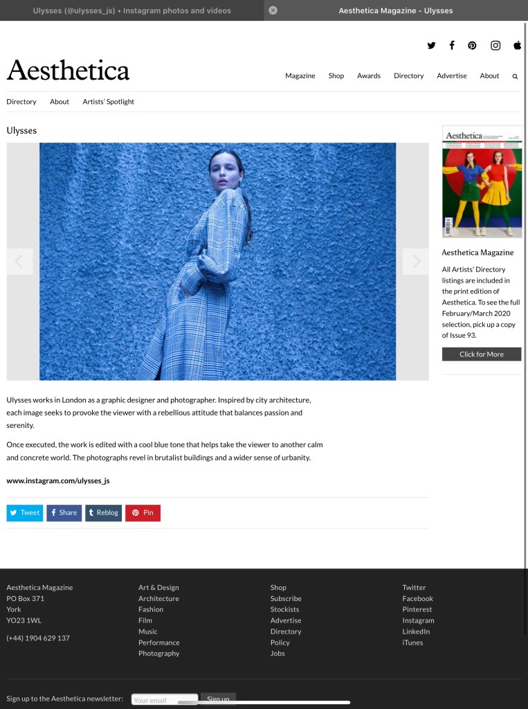 Magazine feature: Aesthetica Magazine