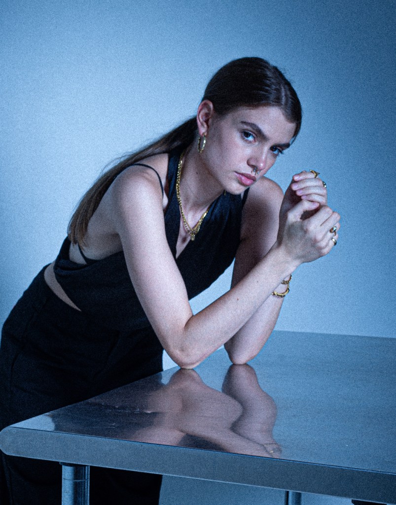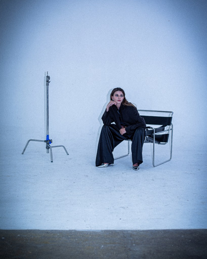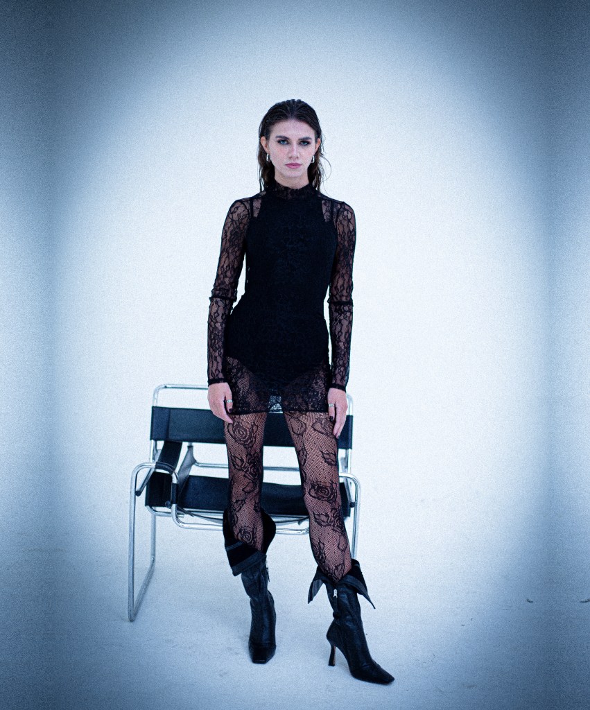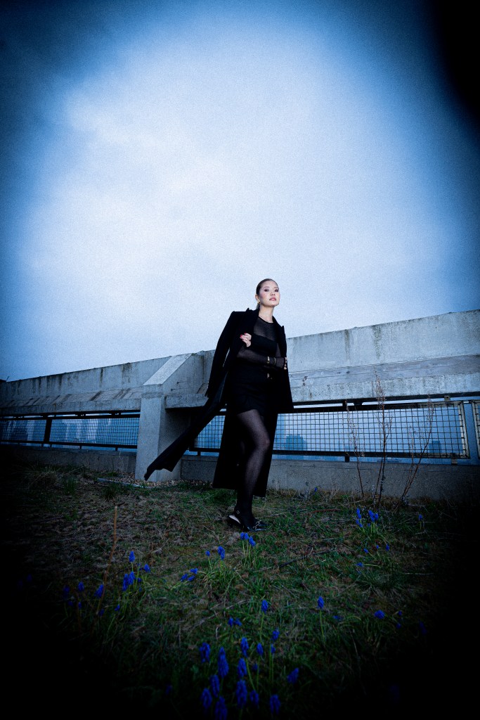 Photographed by Ulysses Saniel atop a Brutalist-inspired rooftop in London, this editorial frames the model against a green landscape and sweeping city skyline. With a sharp blend of raw architecture and natural calm, the shoot captures modern elegance, powered by a dynamic creative team.